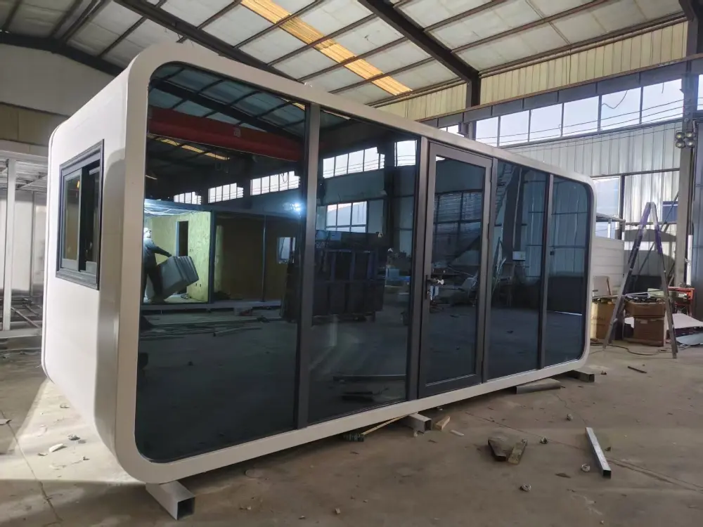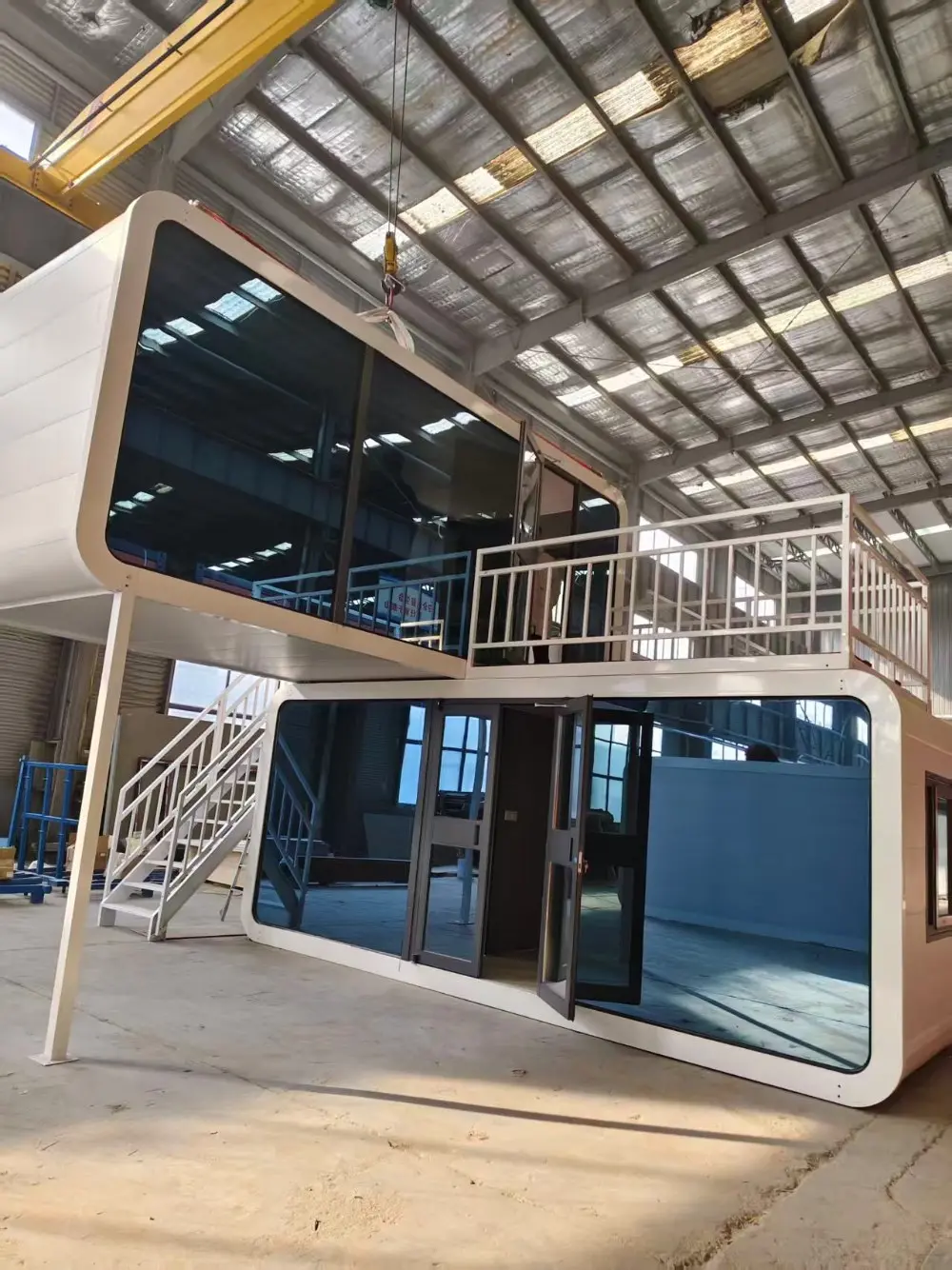 "1. Streamlined and high-profile design, with built-in internet celebrity appeal: featuring a signature round-cornered apple-shaped cabin design, paired with aluminum panel facades and 270° panoramic tempered glass, fully enhancing modernity and recognizability. Say goodbye to the stereotype of traditional containers, with built-in features for occupancy and sharing. Customizable themed appearance perfectly meets the high-end scene's 颜值 and image requirements."